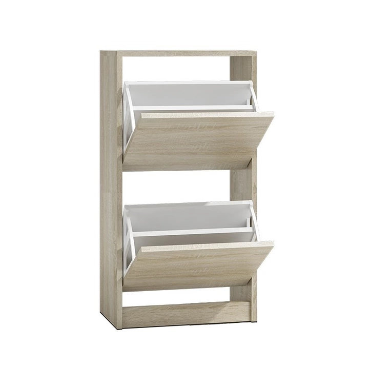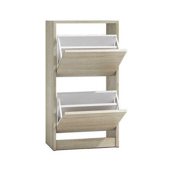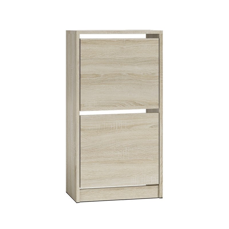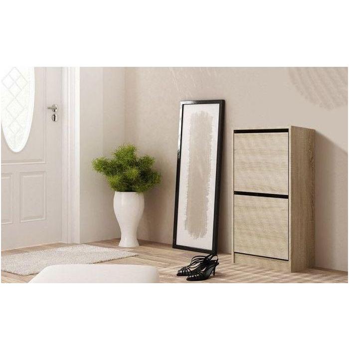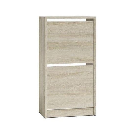 Szafka na buty Sofia S2 to bardzo praktyczny mebel do każdego przedpokoju. Szafka na buty Sofia S2 posiada funkcjonalne uchylne drzwiczki, za którymi znajduje się dwurzędowy kosz na obuwie z tworzywa sztucznego. Na uwagę zasługuje fakt, że szafka na buty Sofia S2 wykonana została z płyty laminowanej, co zapewnia jej wyjątkową wytrzymałość oraz solidność. Szafka na buty w kolorze dąb sonoma.