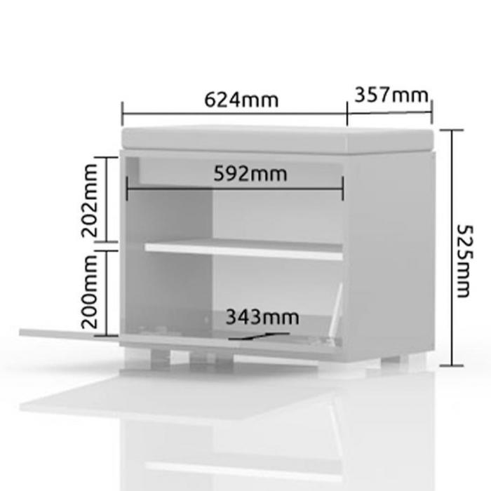 Szafka na buty Stela w kolorze white/tobacco to bardzo praktyczny mebel do każdego przedpokoju. Szafka na buty posiada jedną szafkę na obuwie oraz siedzisko. Materiał wykonania to płyta wiórowa lakierowana/płyta wiórowa laminowana. Mebel do samodzielnego montażu.