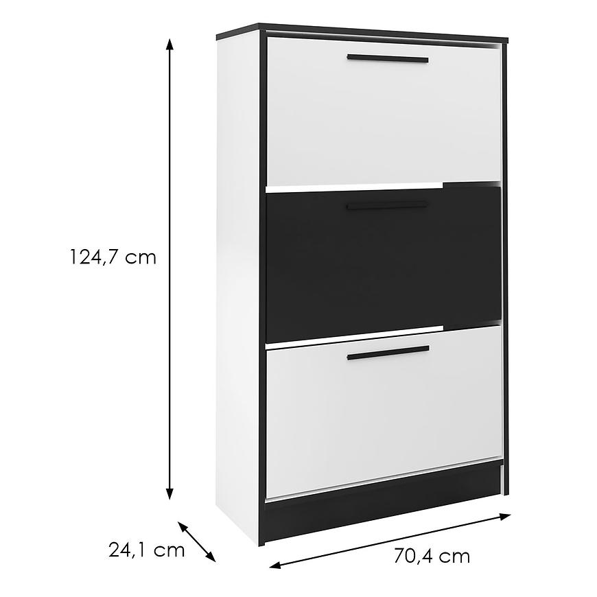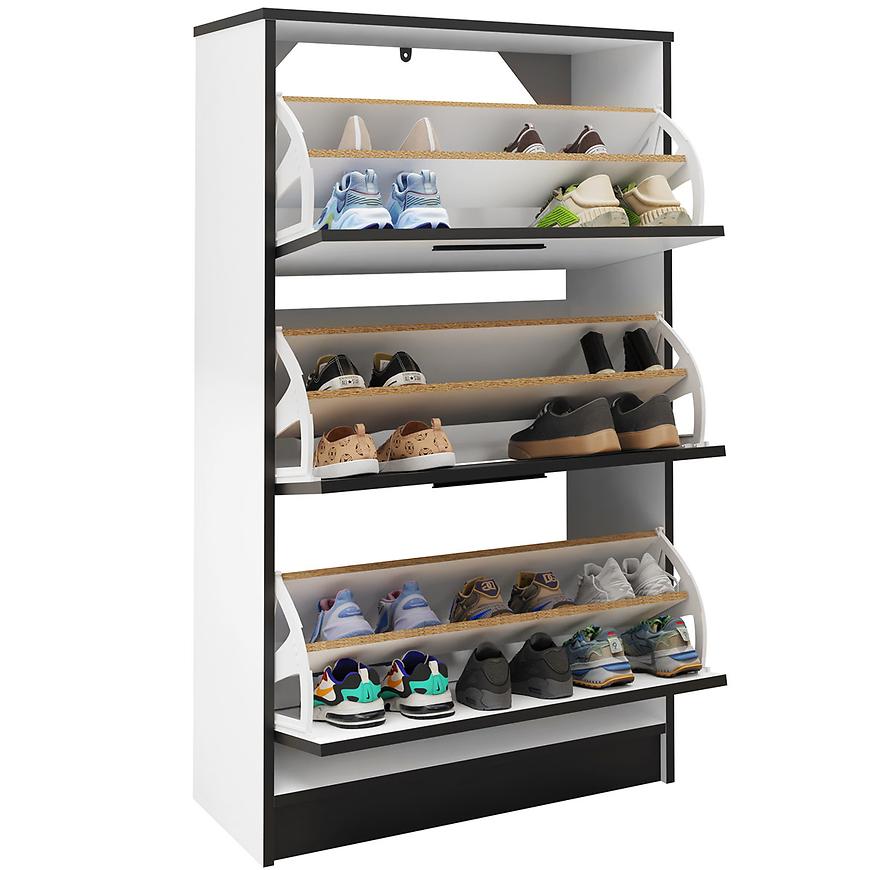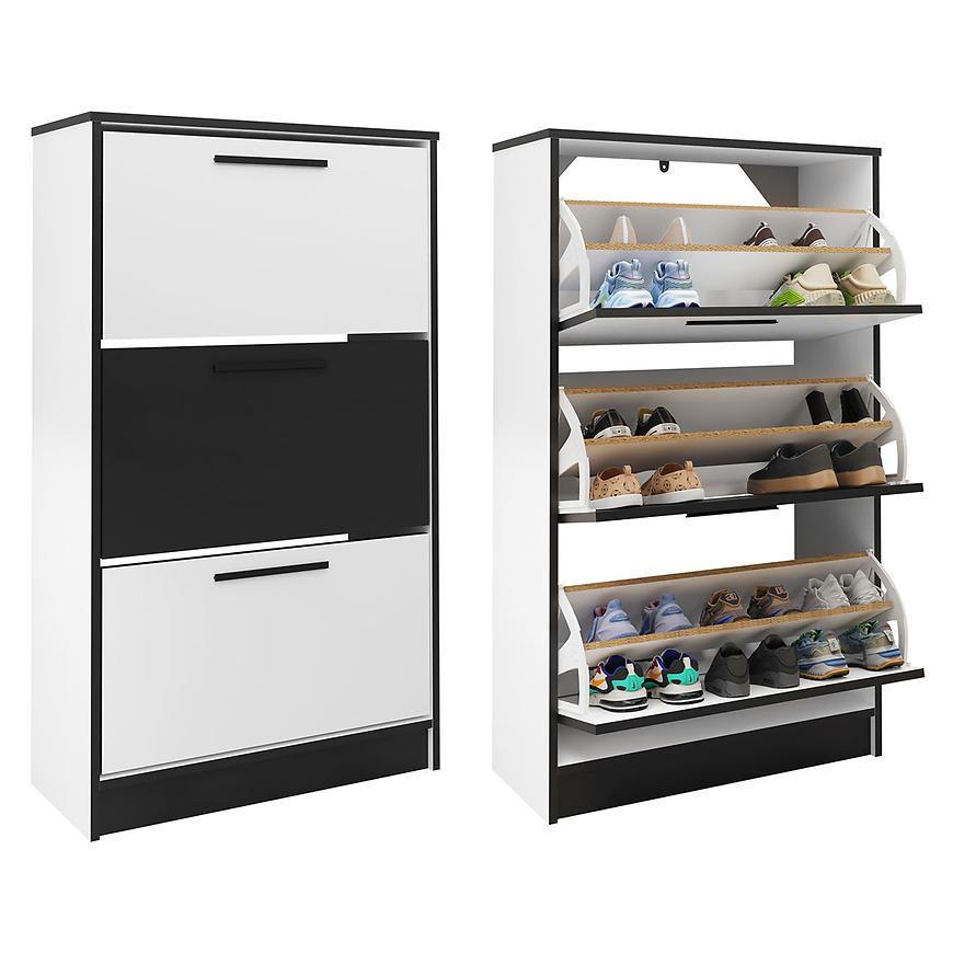 Nowoczesna Szafka na buty SZNB01 to świetne rozwiązanie jeśli chodzi o organizację przestrzeni w przedpokoju. Szafka jest bardzo pojemna. Posiada 3 szafki, które dodatkowo dzielone są w środku na pół. Uniersalna kolorystyka pozwoli zaaranżować przestrzeń w każdym stylu. Szafki wykonane z płyty wiórowej laminowanej.