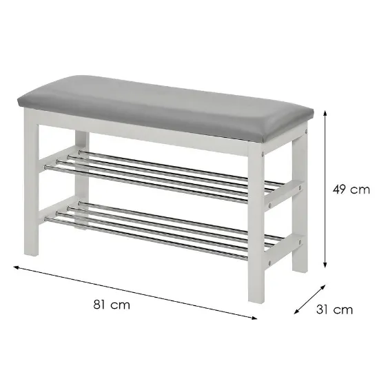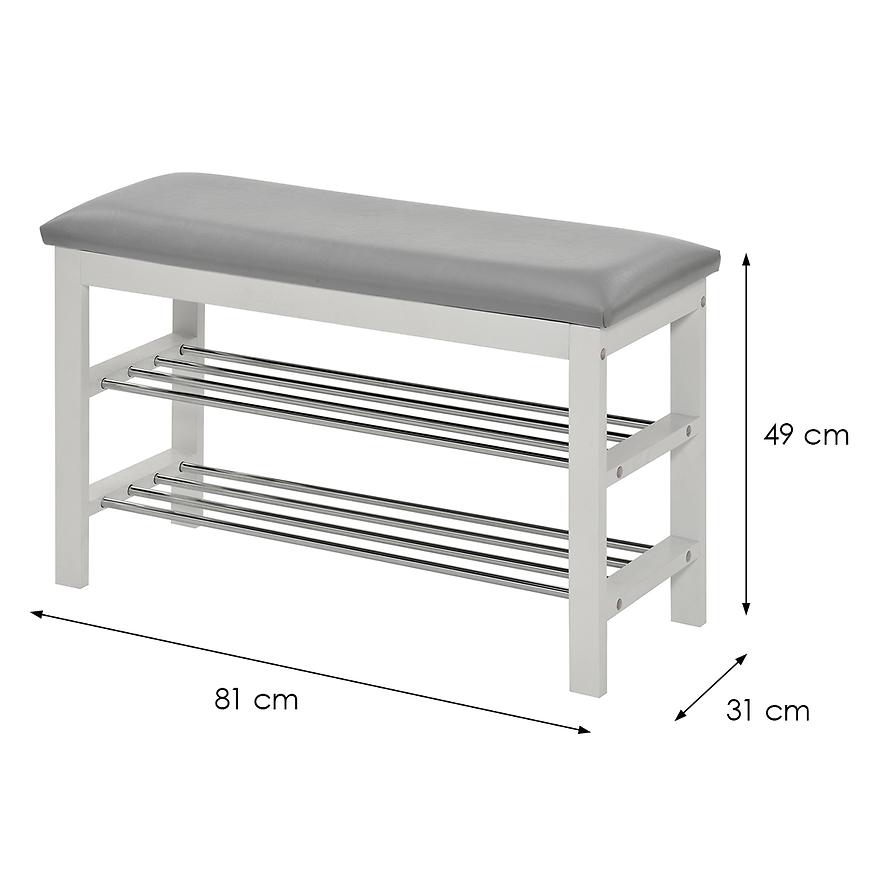 Szafka na buty z siedziskiem w eleganckim, szarym wybarwieniu to połączenie funkcjonalności i nowoczesnego designu. Wykonana z trwałego drewna o matowym wykończeniu korpusu, sprawdzi się w każdym przedpokoju, zapewniając wygodne miejsce do przechowywania obuwia oraz komfortowe siedzenie podczas zakładania butów. Dzięki kompaktowym wymiarom 81x49x31 cm zmieści się nawet w mniejszych przestrzeniach, nie zajmując przy tym dużo miejsca.