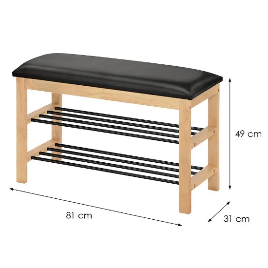 Szafka na buty z siedziskiem doskonale sprawdzi się nie tylko w przedpokoju, ale także w garderobie, holu czy nawet pokoju dziennym. Dzięki neutralnej kolorystyce naturalnego drewna i czerni łatwo dopasować ją do różnych stylów wnętrzarskich, od nowoczesnych po klasyczne aranżacje.