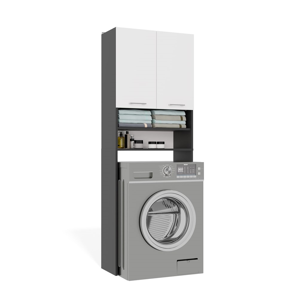 Szafka na pralkę Kara DK antracyt/biały to idealny wybór dla osób ceniących porządek, wygodę i stylowe rozwiązania w aranżacji łazienki.