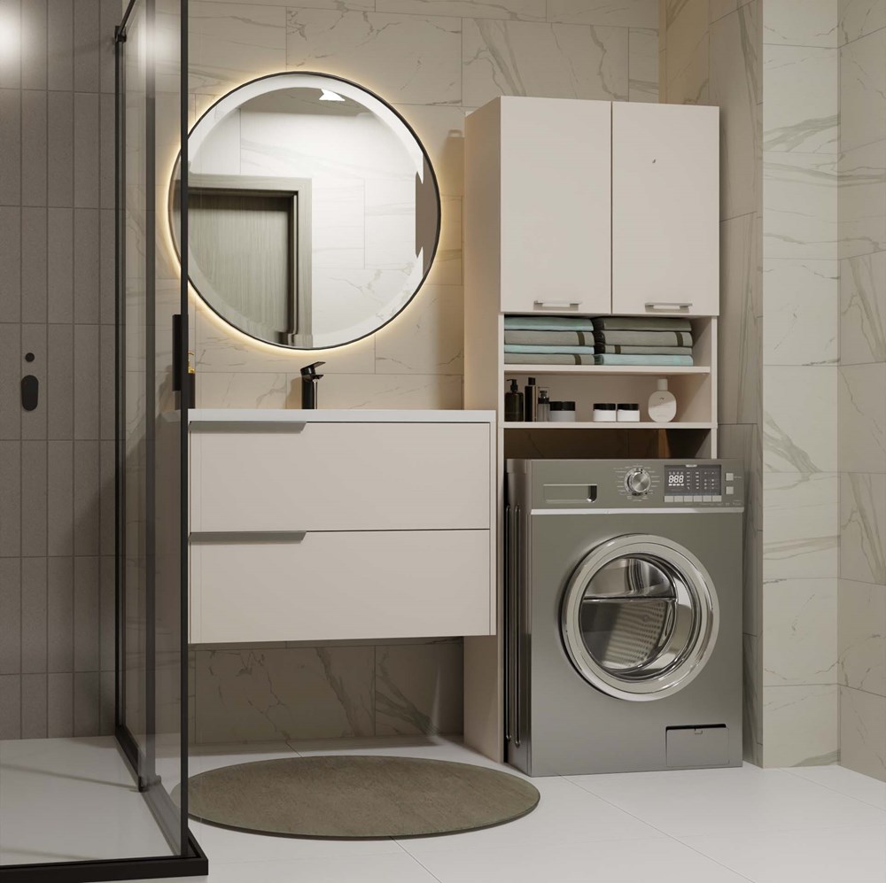 Szafka na pralkę Kara DK kaszmir to idealny wybór dla osób ceniących porządek, wygodę i stylowe rozwiązania w aranżacji łazienki.