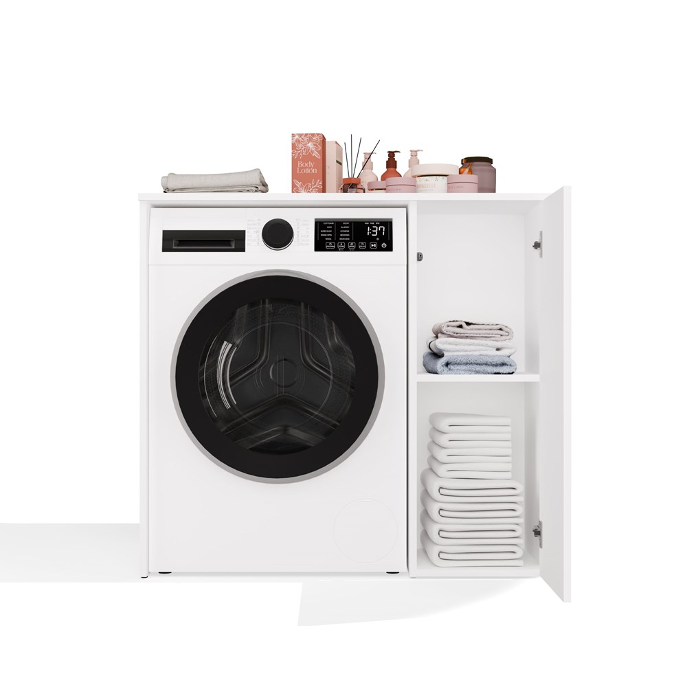 Szafka została zaprojektowana z myślą o standardowych pralkach ładowanych od frontu. Przestrzeń na urządzenie obejmuje: