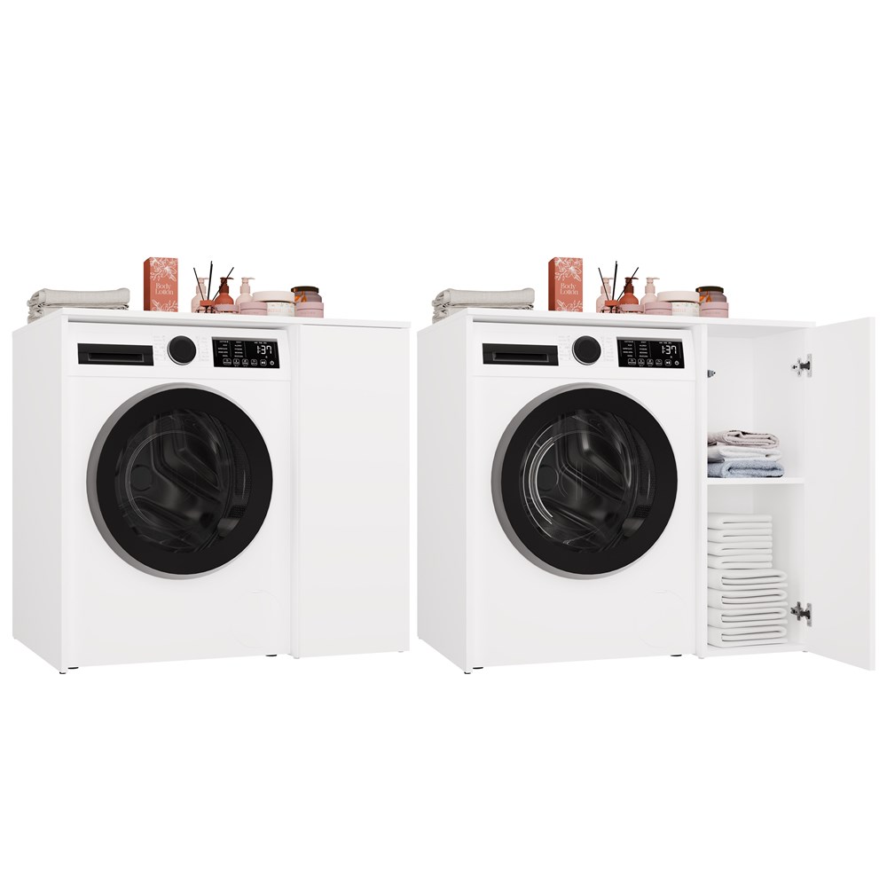 Szafka na pralkę Zara – biała zabudowa pralki z półkami