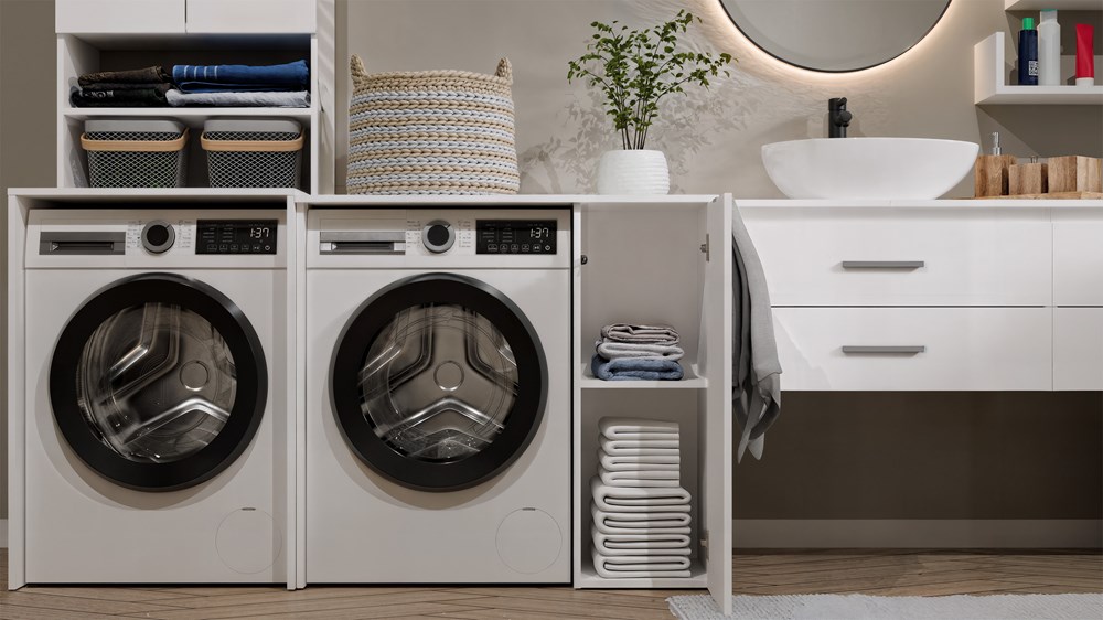 Takie proporcje zapewniają komfort użytkowania i estetyczne wkomponowanie pralki w całą konstrukcję.