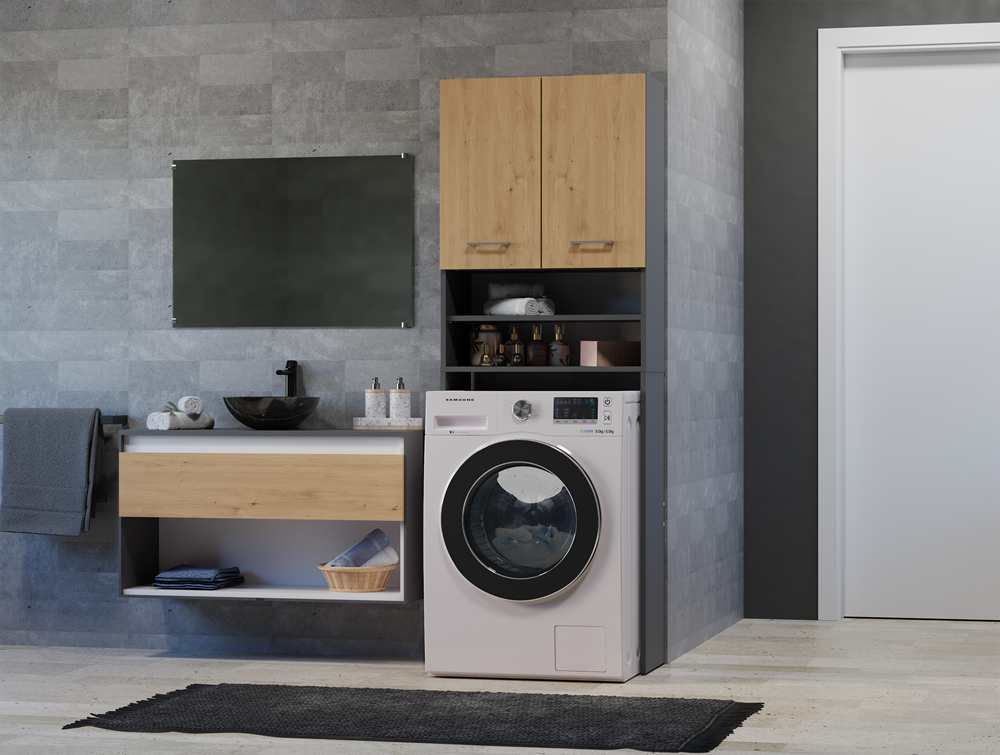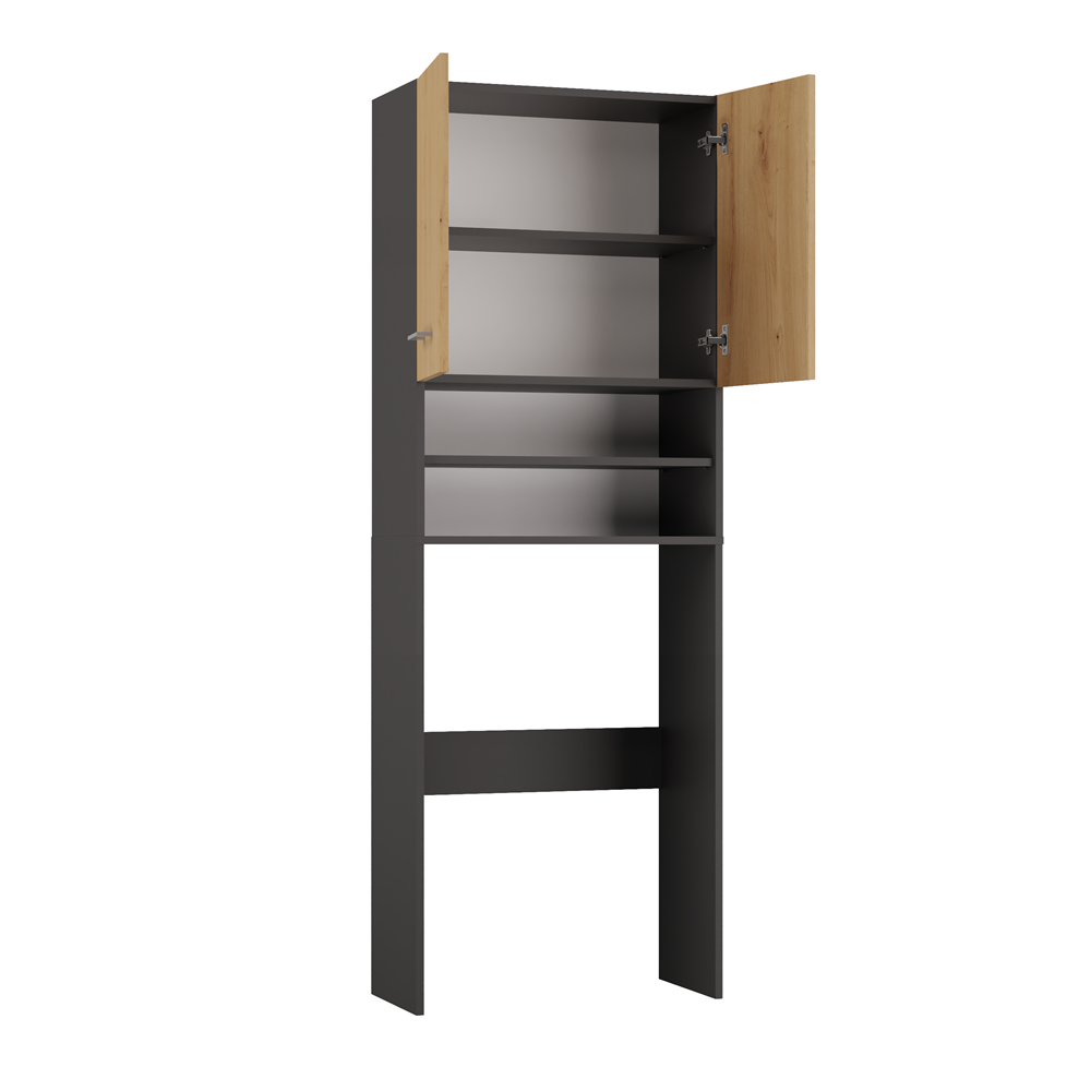 Nowoczesny regał sprosta oczekiwaniom wszystkich, którzy cenią praktyczne rozwiązania. Szafka posiada 2 półki schowane za drzwiczkami oraz 2 półki odsłonięte. Obrzeża – wykończone tworzywem PCV (charakteryzującym się dużą wytrzymałością mechaniczną i chemiczną). Szafka charakteryzuje się minimalistyczną konstrukcją, zastosowano nowy typ okuć oraz gładkie boki bez zaślepek. Słupek łazienkowy to idealne rozwiązanie dla małych powierzchni aby jeszcze lepiej zagospodarować Twoją łazienkę. Przestronna szafka łazienkowa na ręczniki, środki czystości i inne akcesoria łazienkowe. Meble są fabrycznie zapakowane do samodzielnego montażu. W opakowaniu znajduje się instrukcja montażu wraz ze wszystkimi potrzebnymi akcesoriami montażowymi. Powierzchnię mebla czyścić przy pomocy miękkiej szmatki. Unikać stosowania silnie działających środków chemicznych. Produkt przeznaczony do samodzielnego montażu.