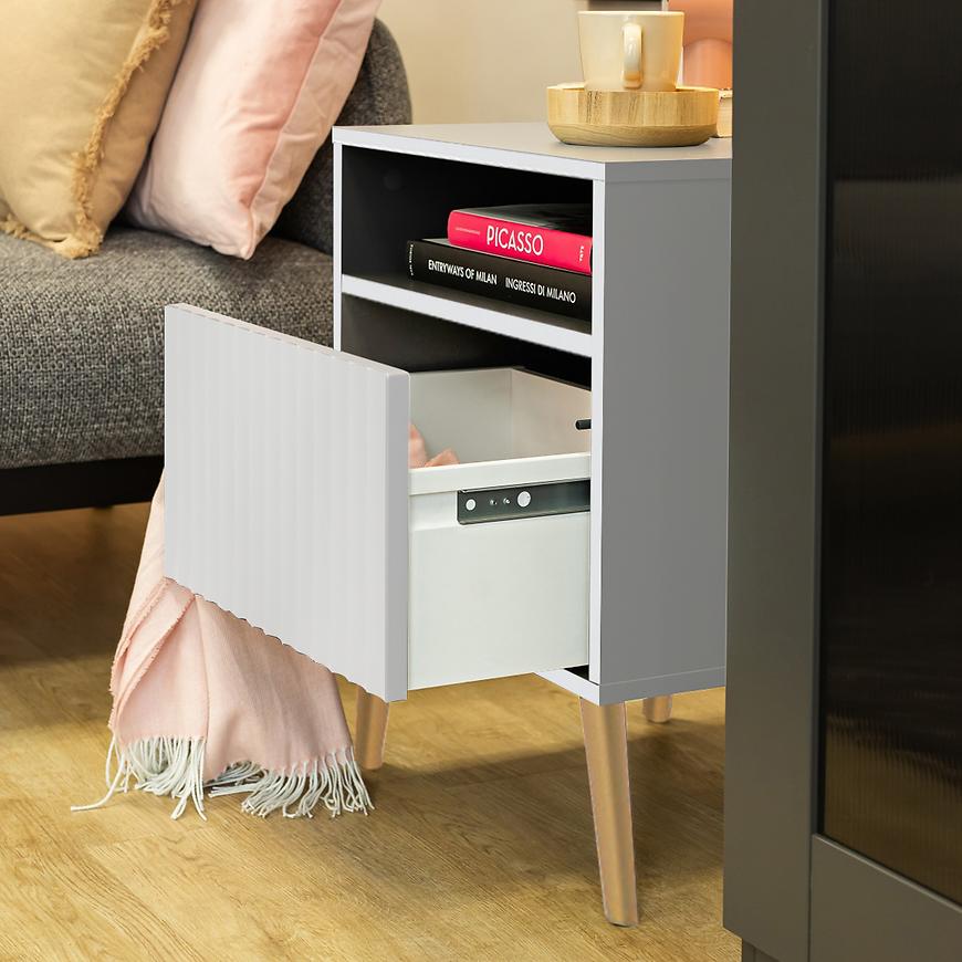Stolik z dodatkową półką pod blatem i dwiema szufladami to praktyczny element wyposażenia salonu, umożliwiający wygodne przechowywanie drobnych przedmiotów. Szafka nocna z półką i szufladą idealnie sprawdzi się w sypialni jako funkcjonalny dodatek do łóżka, oferując przestrzeń na książki, lampkę nocną czy inne niezbędne akcesoria.