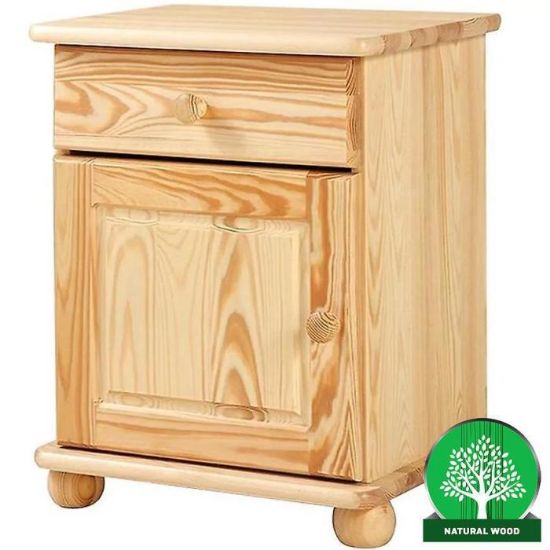 Konstrukcja szafki jest stabilna i wytrzymała. Materiał wykonania to drewno. Szafka z pewnością znajdzie swoje zastosowanie w sypialni.