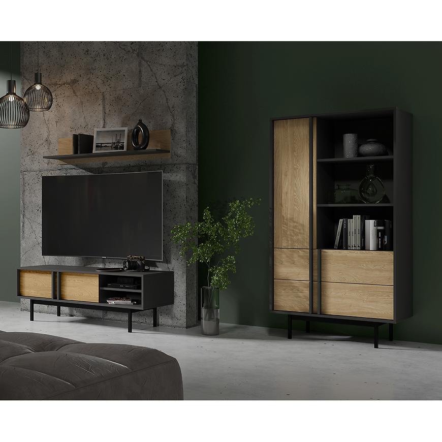 Kolekcja Alsy to wszechstronne rozwiązanie do pokoju dziennego. W skład zestawu mogą wchodzić różne elementy – komody, witryny, szafki RTV, regały czy stoliki – dzięki czemu możliwe jest stworzenie spójnej, funkcjonalnej przestrzeni. Naturalny dąb i antracyt stanowią uniwersalne tło dla nowoczesnych dodatków, a także świetnie komponują się z metalowymi, szklanymi lub tkaninowymi akcentami.