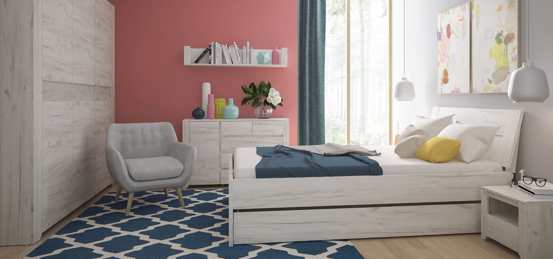 Dzięki swojej ponadczasowej stylistyce, meble Angel doskonale wpisują się w różnorodne aranżacje – od skandynawskich po nowoczesne. Biały odcień z subtelnym usłojeniem drewna sprawia, że sypialnia staje się przytulna, a zarazem elegancka.