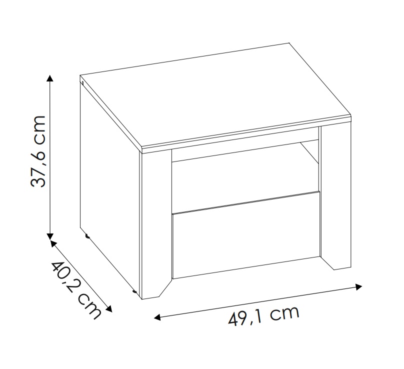 Szafka ma 49,1 cm szerokości, 37,6 cm wysokości i 40,2 cm głębokości, co sprawia, że jest niewielka, a jednocześnie praktyczna. Idealnie wpasuje się w mniejsze przestrzenie, nie zajmując dużo miejsca przy łóżku.
