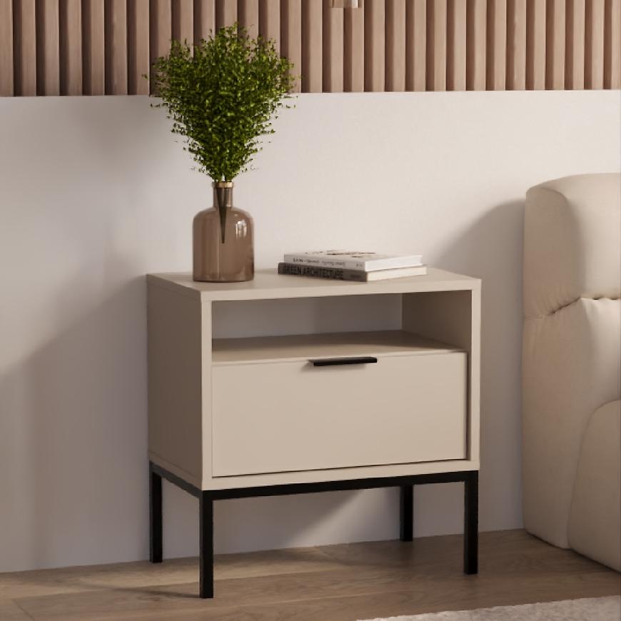 Kolekcja mebli Austin to doskonały wybór dla osób ceniących nowoczesny styl i elegancję. Jasna kolorystyka z dominującym dekorem kaszmir, wzbogacona o czarne akcenty w postaci uchwytów oraz ramy z nóżkami, nadaje wnętrzu wyrafinowanego charakteru. Fronty i korpusy w matowym wykończeniu podkreślają minimalistyczny design, który harmonijnie komponuje się zarówno z klasycznymi, jak i nowoczesnymi aranżacjami.