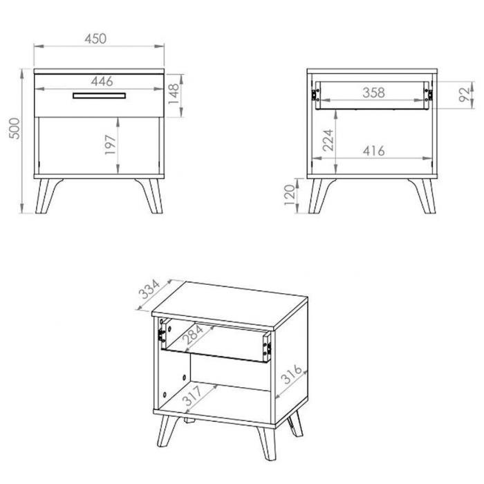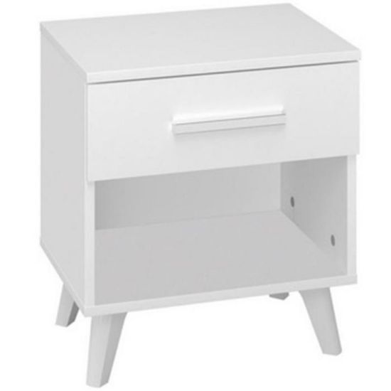 Szafka nocna to niezbędny element wyposażenia każdej sypialni. Stolik świetnie sprawdzi się obok łóżka. Może służyć do przechowywania rzeczy, ale również jako dekoracja. Jest stabilny i wytrzymały. Został wykonany z płyty wiórowej laminowanej w kolorze białym.