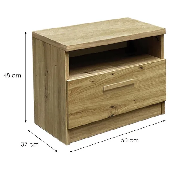 Wykonana z wysokiej jakości płyty wiórowej laminowanej, szafka Canada łączy estetykę z trwałością, zapewniając odporność na codzienne użytkowanie. Idealna do przechowywania książek, drobiazgów czy przedmiotów codziennego użytku, podkreśli nowoczesny charakter Twojej sypialni.