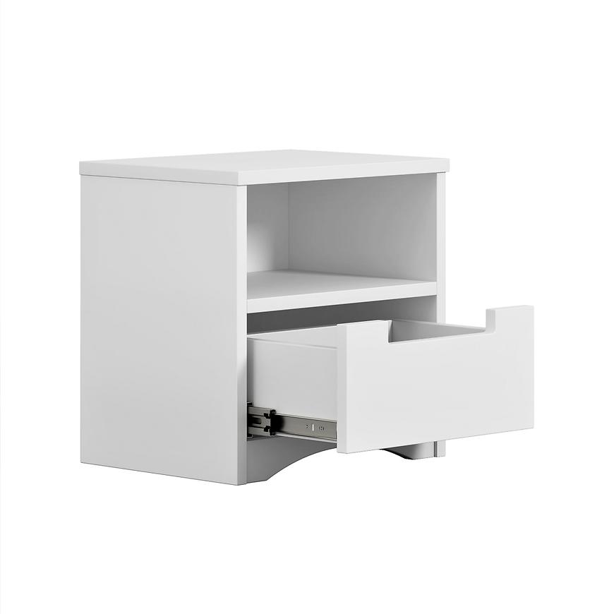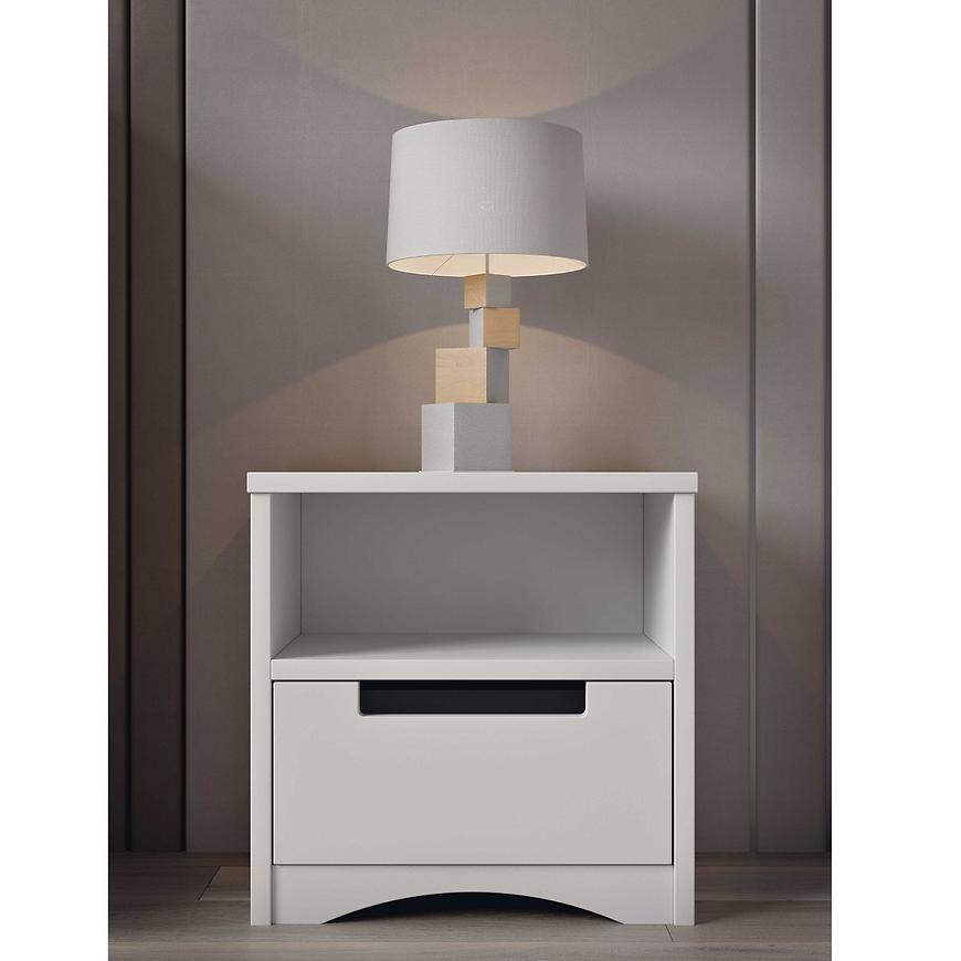 Jedna szuflada umieszczona w tej szafce nocnej zapewnia miejsce do przechowywania drobiazgów, książek czy innych niezbędnych przedmiotów, a jednocześnie utrzymuje minimalistyczny charakter mebla. To doskonałe rozwiązanie dla tych, którzy cenią porządek w sypialni.