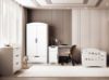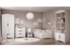 Kolorystyka białych frontów oraz korpusu nadaje szafce lekkości i uniwersalności, co sprawia, że doskonale komponuje się z różnymi aranżacjami wnętrza. Matowe wykończenie frontów dodaje subtelności, podczas gdy płyta wiórowa lakierowana i laminowana w konstrukcji gwarantuje trwałość na lata.