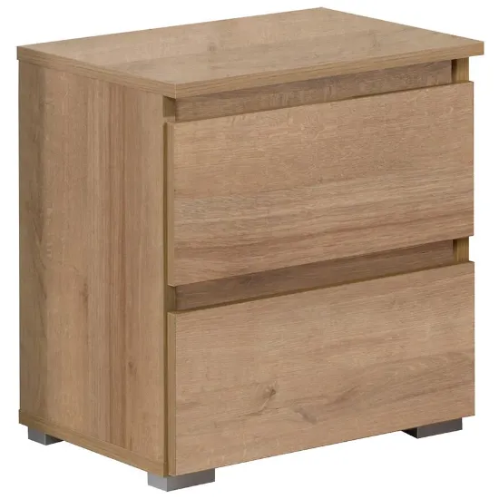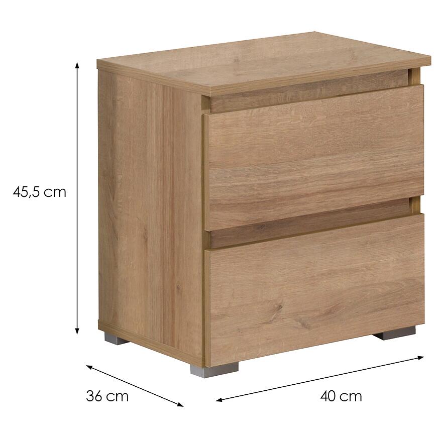 Model wyposażony jest w dwie szuflady, które umożliwiają wygodne przechowywanie drobnych przedmiotów, takich jak książki, akcesoria czy rzeczy codziennego użytku. Kompaktowe wymiary sprawiają, że szafka świetnie sprawdzi się nawet w niewielkich sypialniach.