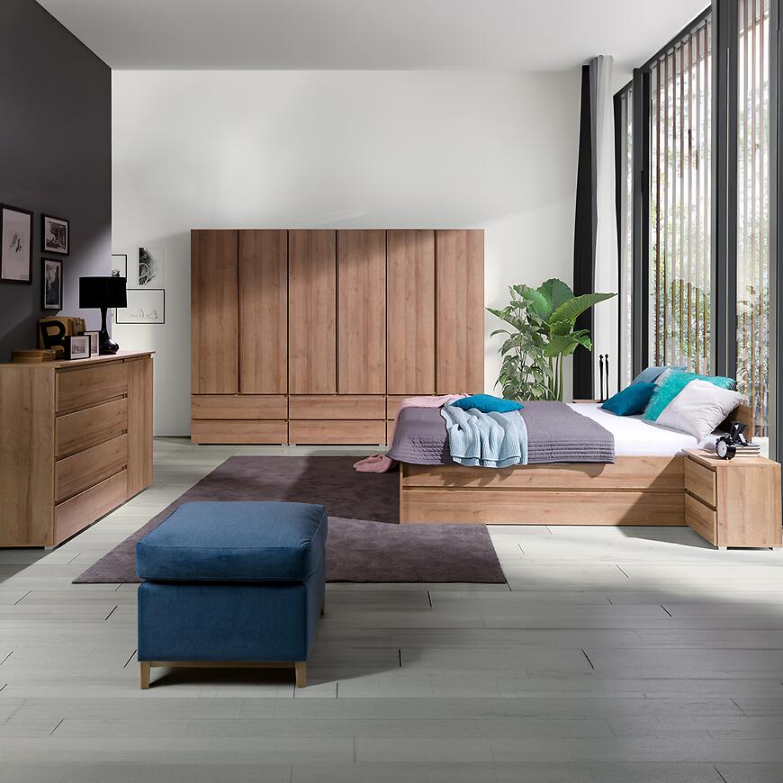 Szafka nocna Cosmo C13 w dekorze dąb riviera to stylowy i funkcjonalny mebel do sypialni, który łączy nowoczesną formę z naturalnym wyglądem drewna. Jasne, ciepłe wybarwienie nadaje wnętrzu przytulności i elegancji.