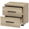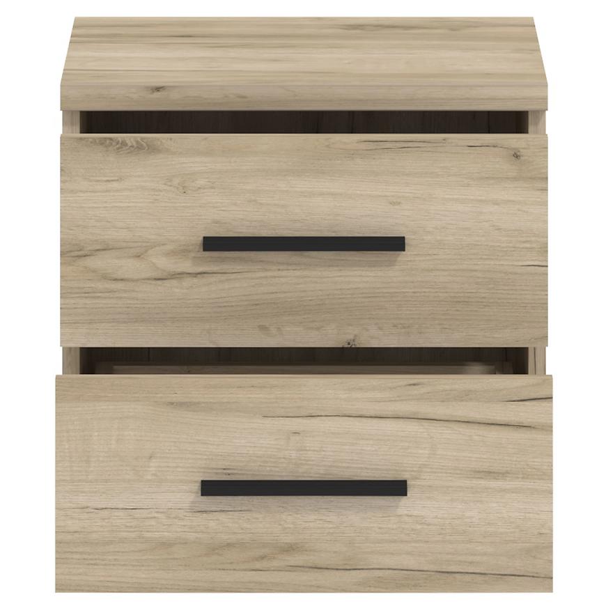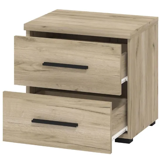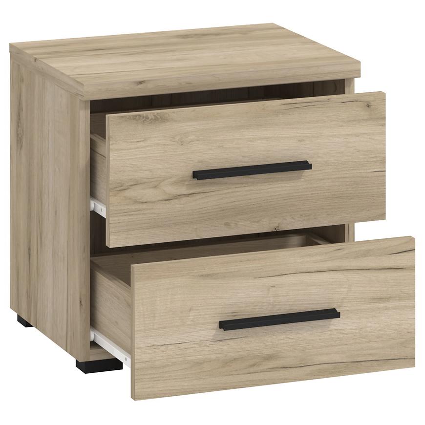 Szafka posiada dwie szuflady, które zapewniają wygodne miejsce do przechowywania niezbędnych drobiazgów, takich jak książki, okulary czy ładowarka do telefonu. Stabilna konstrukcja i staranne wykonanie gwarantują długotrwałe użytkowanie.