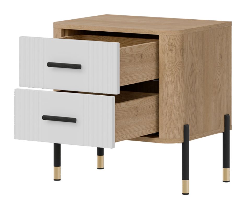 Białe fronty kolekcji Dante w połączeniu z korpusem w dekorze dąb Cremona Torro to idealny wybór do wnętrz, w których dominuje jasność i harmonia. Biel optycznie powiększa przestrzeń, dlatego meble Dante w tej wersji szczególnie dobrze sprawdzą się w mniejszych pomieszczeniach, nadając im lekkości.