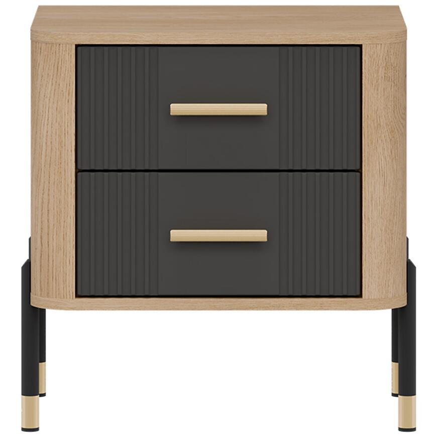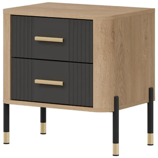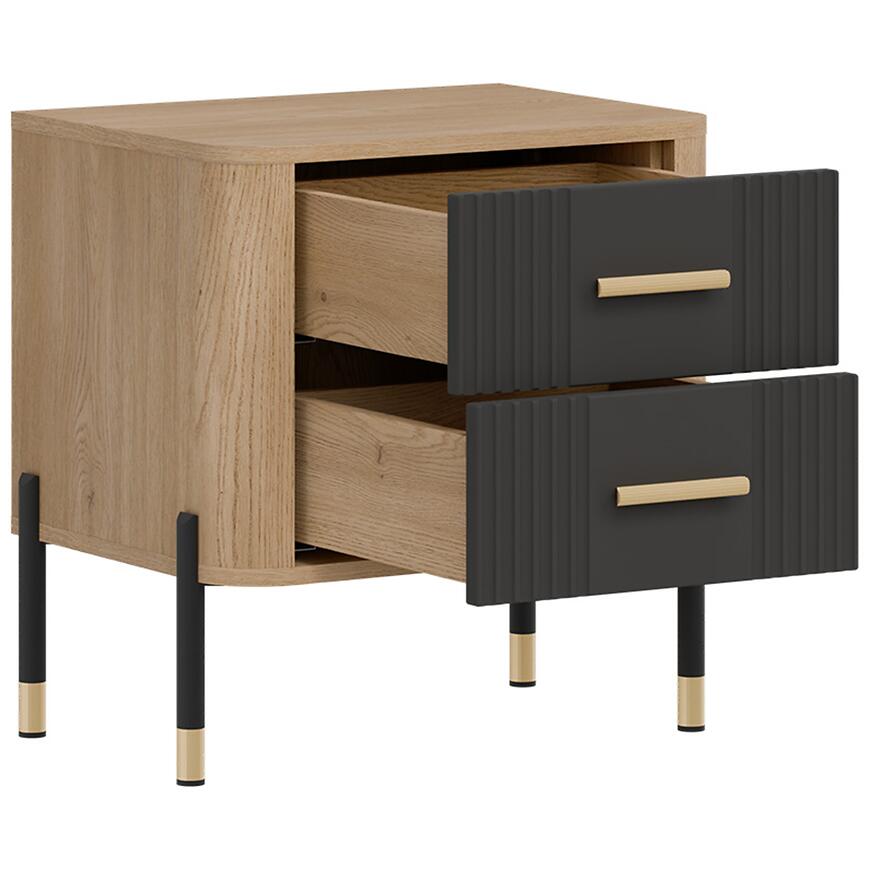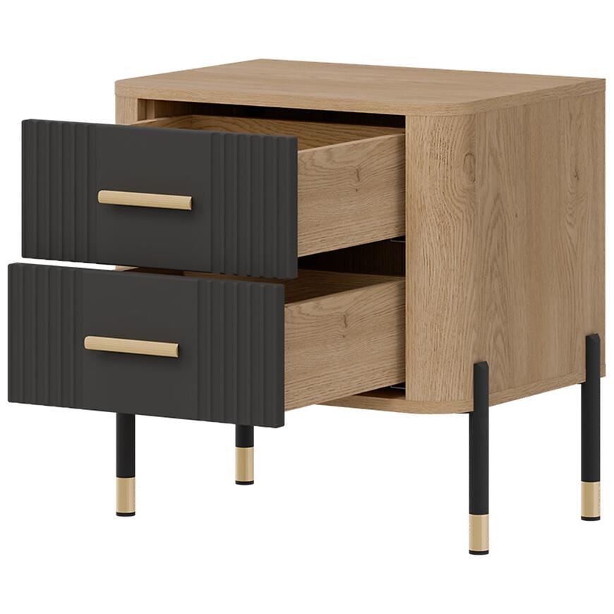 Szafka nocna Dante Dt21 w kolorze Antracyt łączy nowoczesny design z praktycznym zastosowaniem. Jasny korpus w odcieniu dąb Cremona harmonizuje z matowymi, antracytowymi frontami, nadając wnętrzu elegancki i stonowany charakter.