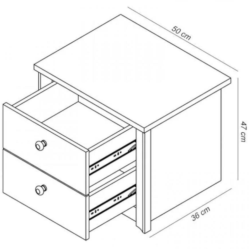 Kształt szafki jest prosty, co nadaje jej uniwersalnego charakteru, a jednocześnie nawiązuje do klasycznego stylu. Dwie szuflady pozwalają na przechowywanie różnorodnych drobiazgów, które chcielibyśmy mieć pod ręką w sypialni. Kolorystyka szafki, zarówno na frontach, jak i w kolorze korpusu, to ciemne drewnopodobne wykończenie, które nadaje meblowi elegancji.