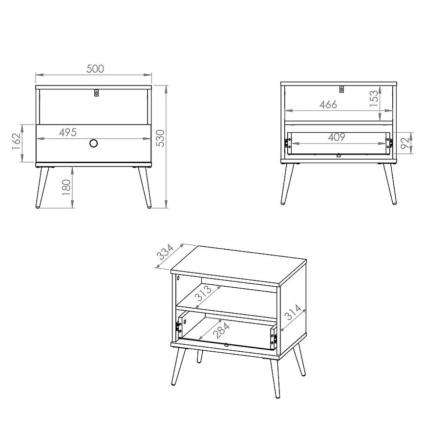 Szafka nocna Forest 06 jest nie tylko estetyczna, ale również bardzo funkcjonalna. Wyposażona w jedną szufladę, oferuje odpowiednią przestrzeń na przechowywanie niezbędnych przedmiotów, takich jak książki, lampka nocna czy inne drobiazgi, które chcesz mieć pod ręką przed snem.
