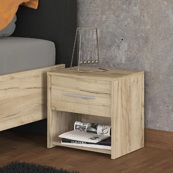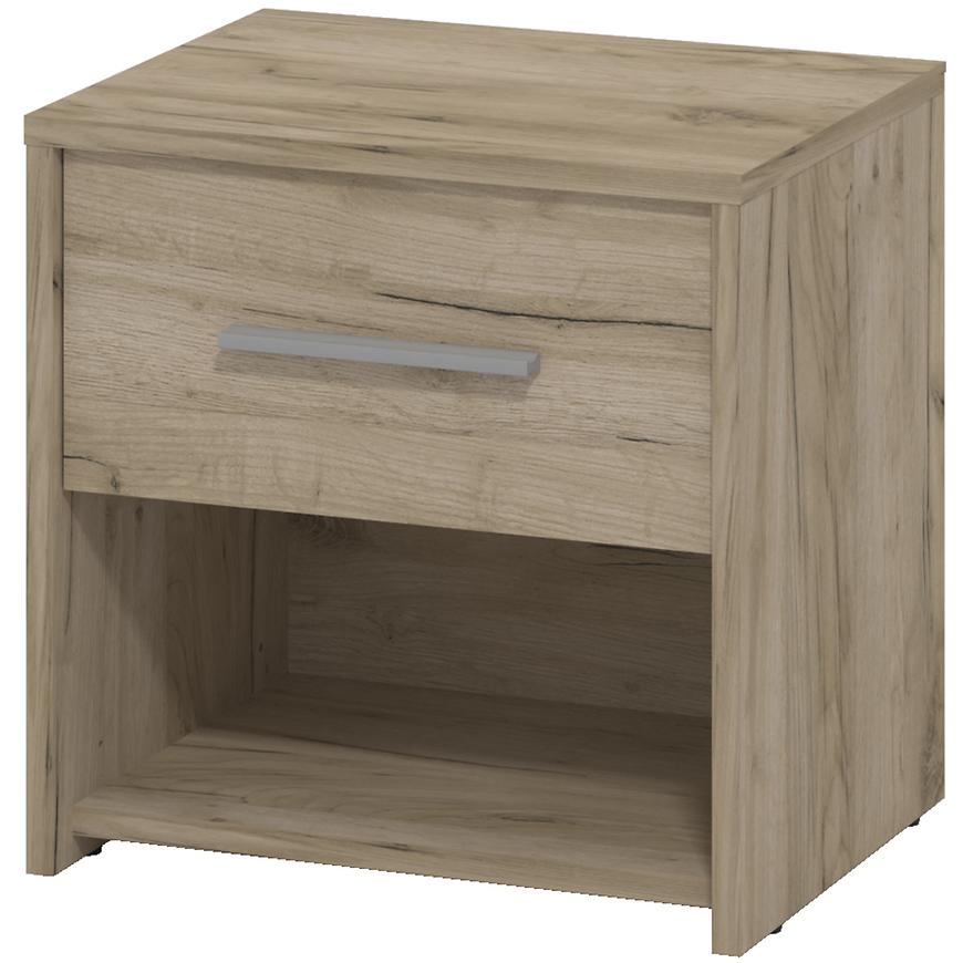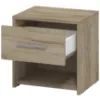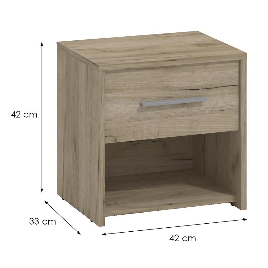 Szafka posiada jedną szufladę i połkę, które zapewniają wygodne miejsce do przechowywania niezbędnych drobiazgów, takich jak książki, okulary czy ładowarka do telefonu. Stabilna konstrukcja i staranne wykonanie gwarantują długotrwałe użytkowanie.