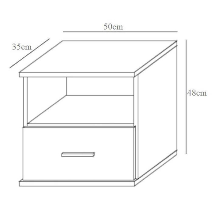 Konstrukcja szafki jest stabilna i wytrzymała. Moduł wykonany z płyty wiórowej laminowanej.