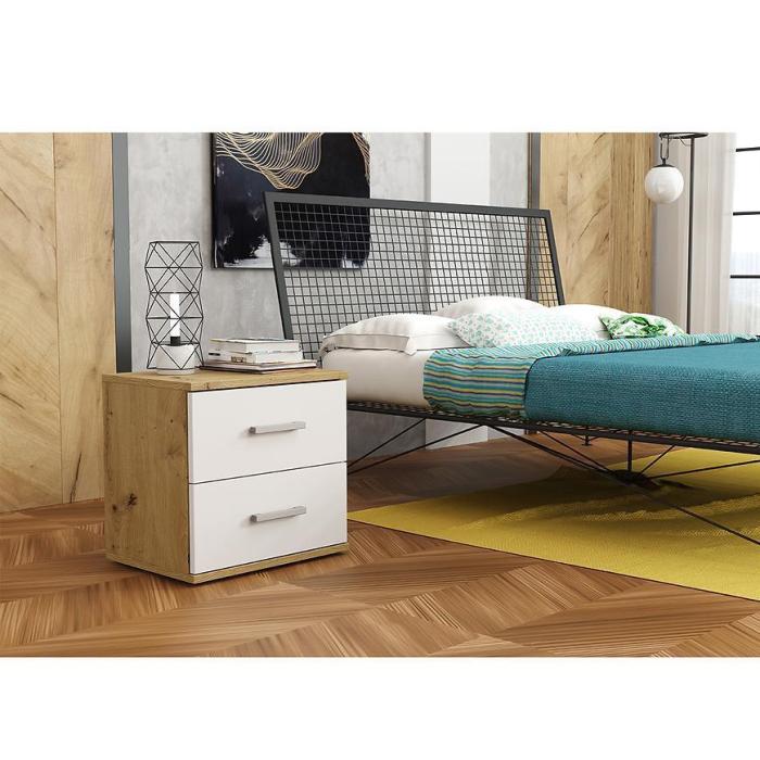 Konstrukcja szafki jest stabilna i wytrzymała. Materiał wykonania to płyta wiórowa laminowana w kolorze artisan/biały. Szafka z pewnością znajdzie swoje zastosowanie w sypialni.