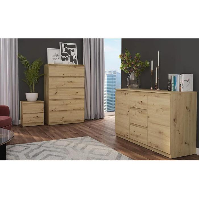 Szafka nocna to niezbędny element wyposażenia każdej sypialni. Szafka Carlos świetnie sprawdzi się obok łóżka. Może służyć do przechowywania rzeczy, ale będzie również pełniła funkcję dekoracji. Jest stabilna i wytrzymała. Została wykonana z płyty wiórowej laminowanej w kolorze artisan.