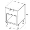 Szafka ma szerokość 41 cm, głębokość 40 cm i wysokość 58 cm, co zapewnia wygodne miejsce przy łóżku. Prostokątny blat umożliwia ustawienie lampki nocnej, budzika lub drobnych akcesoriów, które zawsze chcemy mieć pod ręką.