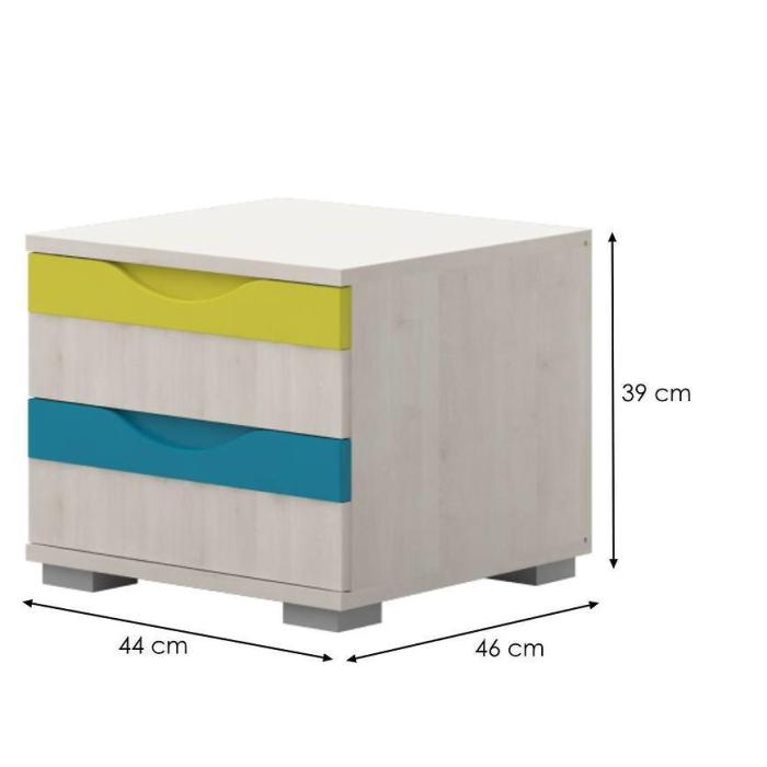 Konstrukcja szafki jest stabilna i wytrzymała. Materiał wykonania to płyta wiórowa laminowana w kolorze polar pine. Szafka z pewnością znajdzie swoje zastosowanie w pokoju młodzieżowym i sypialni.