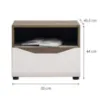 Szafka nocna Lionel Li13 Dąb S./Biały to stylowy i praktyczny mebel, który doskonale wpasuje się w nowoczesne wnętrza. Połączenie jasnego dębu sonoma z białymi elementami tworzy harmonijny, świeży wygląd. Szafka wyposażona jest w szufladę oraz półkę, zapewniając wygodne miejsce do przechowywania podręcznych przedmiotów. Idealna do sypialni, łącząc elegancję z funkcjonalnością.