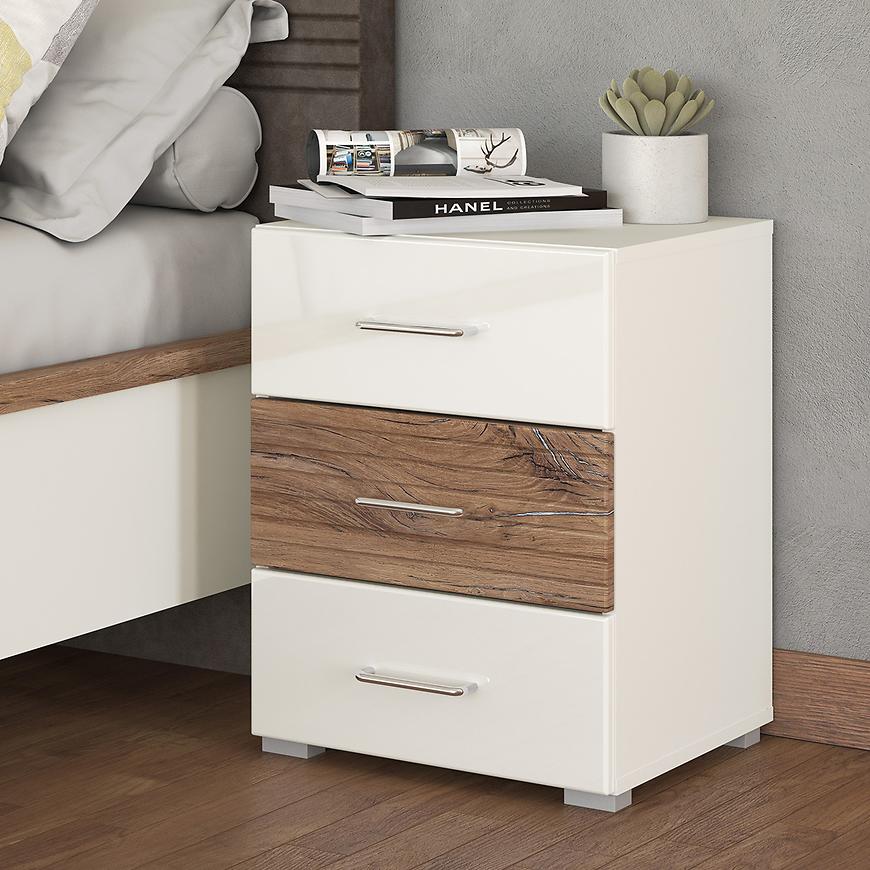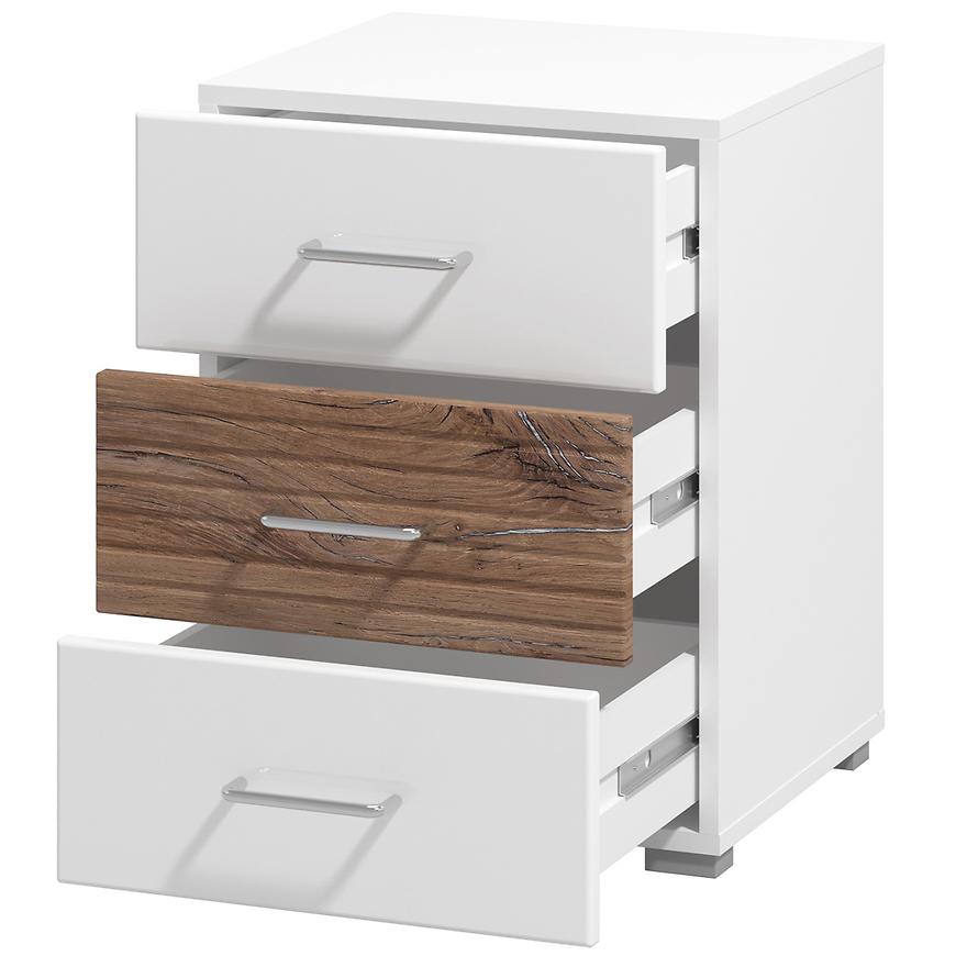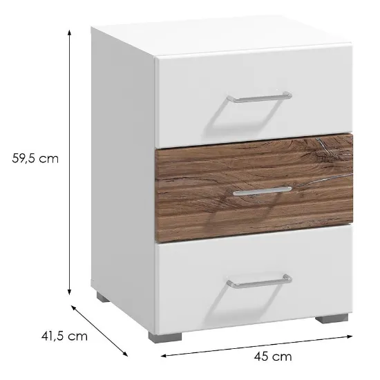 Szafka posiada trzy szuflady, które zapewniają wygodne miejsce do przechowywania niezbędnych drobiazgów, takich jak książki, okulary czy ładowarka do telefonu. Stabilna konstrukcja i staranne wykonanie gwarantują długotrwałe użytkowanie.