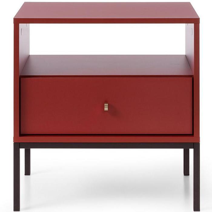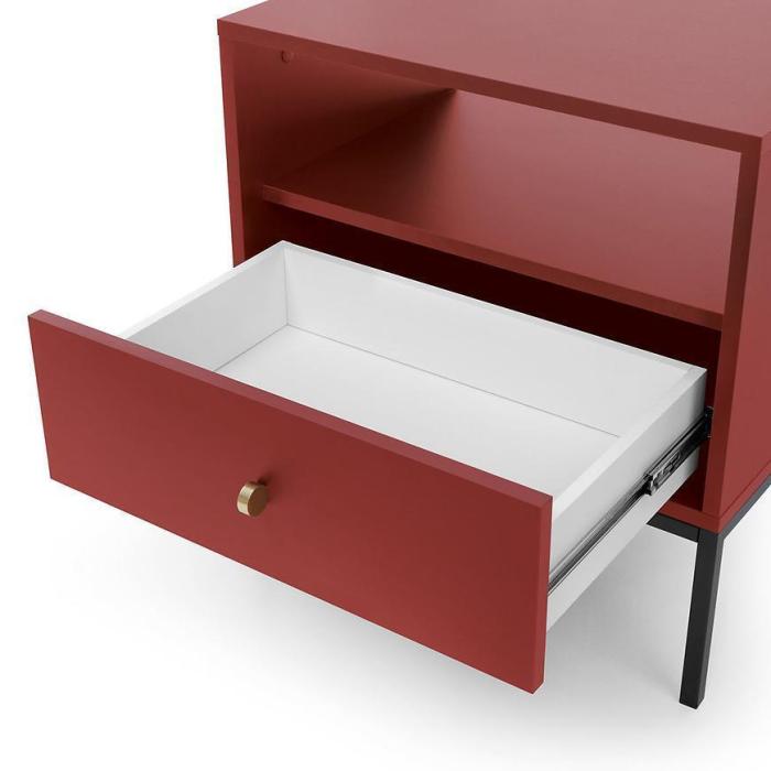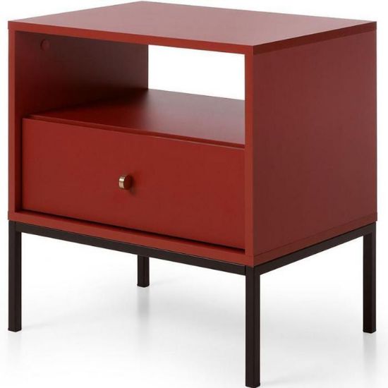 Kolekcja komód Mono to meble utrzymane w stylu loftowym, ultra nowoczesne, które świetnie sprawdzą się w nowoczesnych, industrialnych wnętrzach. Mocne, ale jednocześnie stłumione kolory w połączeniu z zachowanym minimalizmem to świente rozwiązanie do wnętrz, w których chcemy zachować spójność wystroju, ale także podkreślić jego oryginalny charakter. Dzięki temu, że konstrukcja jest umieszczona na wysokich nóżkach umożliwia nam odkurzenie czy umycie podłogi pod meblami. Szafka nocna posiada jedną wysuwaną szufladę w której można umieścić najpotrzebniejsze rzeczy. Szafka z pewnością znajdzie swoje zastosowanie w sypialni, ale również w salonie pełniąc rolę małego stolika.
