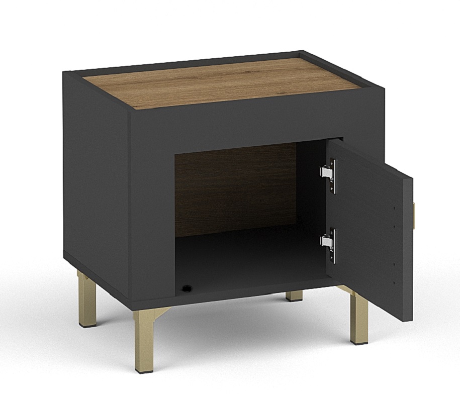 - Szafka nocna Mossa MO11 dąb whisky/czarny mat