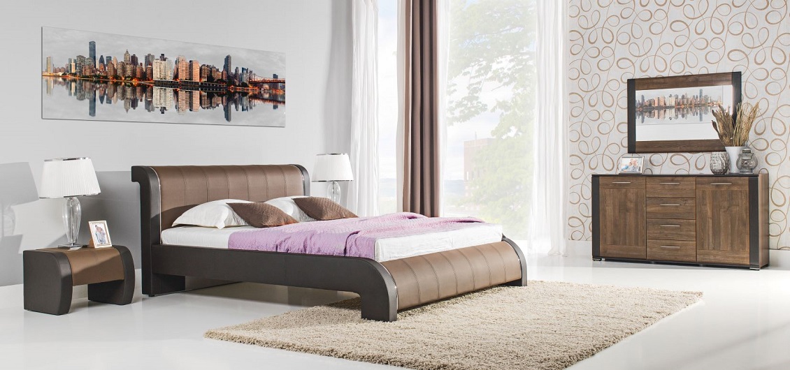 Kolekcja Naomi to połączenie klasycznej elegancji i funkcjonalności, które doskonale sprawdzi się zarówno w pokoju dziennym, jak i sypialni. Meble wykonane są z wysokiej jakości płyty laminowanej, a ich korpusy i fronty utrzymane w ciepłym kolorze orzecha podkreślają ponadczasowy styl wnętrza. Matowe wykończenie nadaje im subtelnej elegancji, a ozdobne, delikatnie zaokrąglone listwy w odcieniu wenge dodają wyjątkowego charakteru.