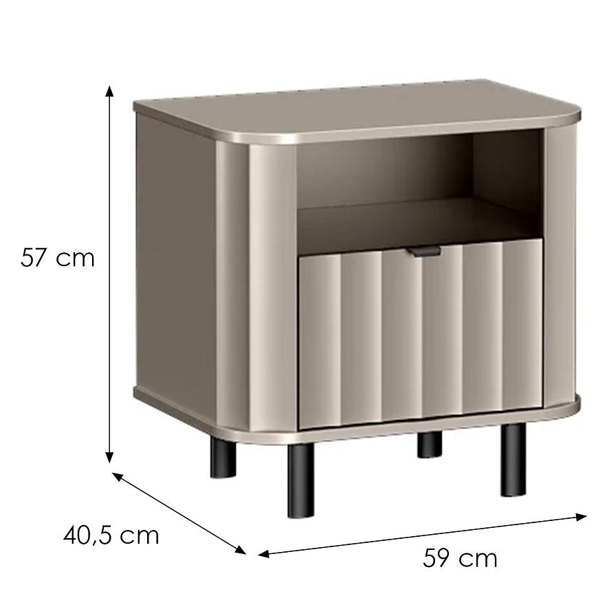 Szafka nocna pochodzi z kolekcji NOVADO, która łączy funkcjonalność z elegancką prostotą, tworząc idealne rozwiązania do nowoczesnych wnętrz.