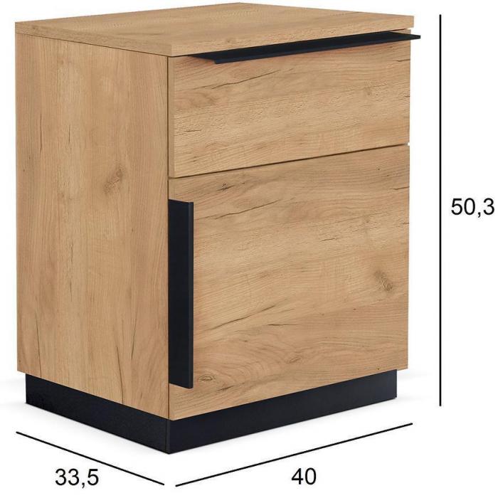 Szafka nocna z kolekcji ORLANDO to niezbędny element wyposażenia każdej sypialni. Stolik świetnie sprawdzi się obok łóżka. Może służyć do przechowywania rzeczy, ale również jako dekoracja. Jest stabilny i wytrzymały. Został wykonany z płyty wiórowej laminowanej w kolorze dąb craft złoty.