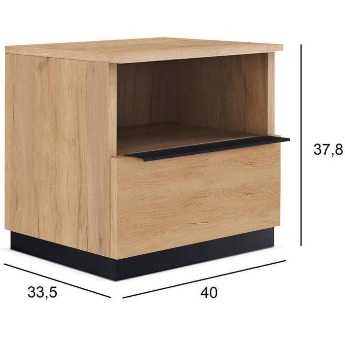 Szafka nocna z kolekcji ORLANDO to niezbędny element wyposażenia każdej sypialni. Stolik świetnie sprawdzi się obok łóżka. Może służyć do przechowywania rzeczy, ale również jako dekoracja. Jest stabilny i wytrzymały. Został wykonany z płyty wiórowej laminowanej w kolorze dąb craft złoty.