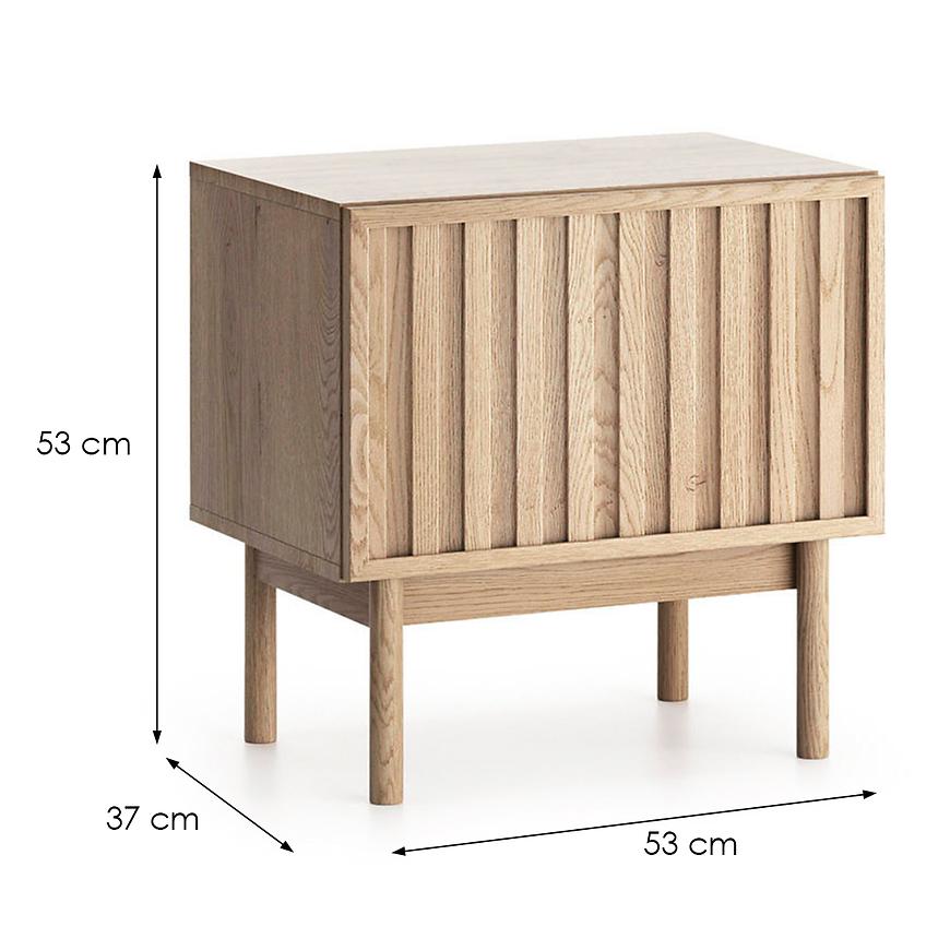 Szafka nocna z kolekcji Saori, wykonana z płyty wiórowej laminowanej w dekorze cremona. Szafka posiada jedną szufladę.