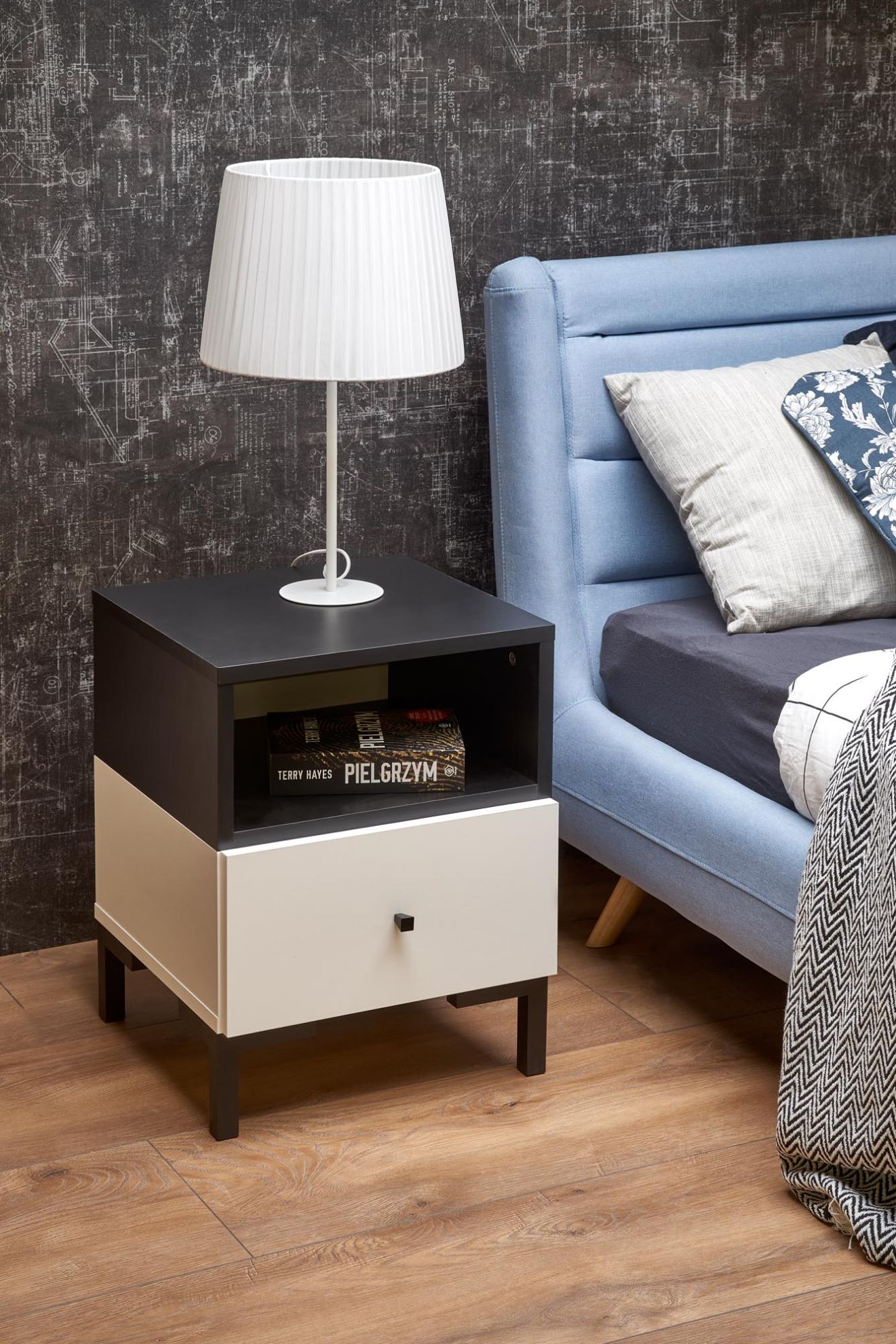 Wykonana z wysokiej jakości materiałów, takich jak płyta meblowa laminowana i polipropylen, szafka nocna Sofia łączy trwałość z estetyką. Jej kolorystyka nadaje meblowi nowoczesnego charakteru, dodając elegancji i kontrastu do przestrzeni sypialnianej.