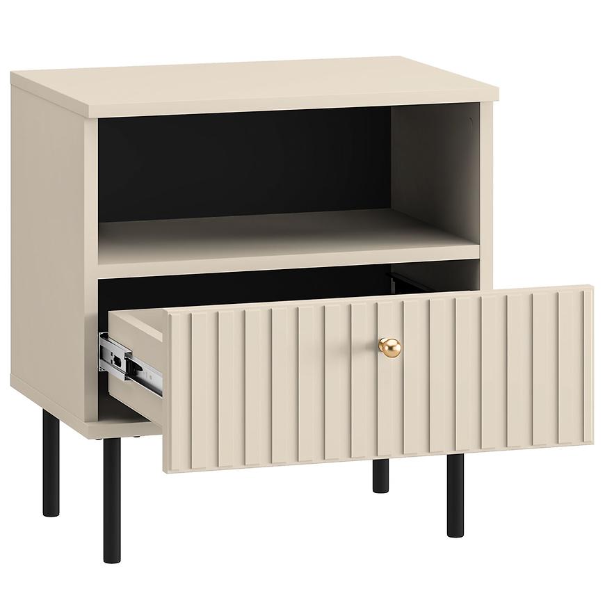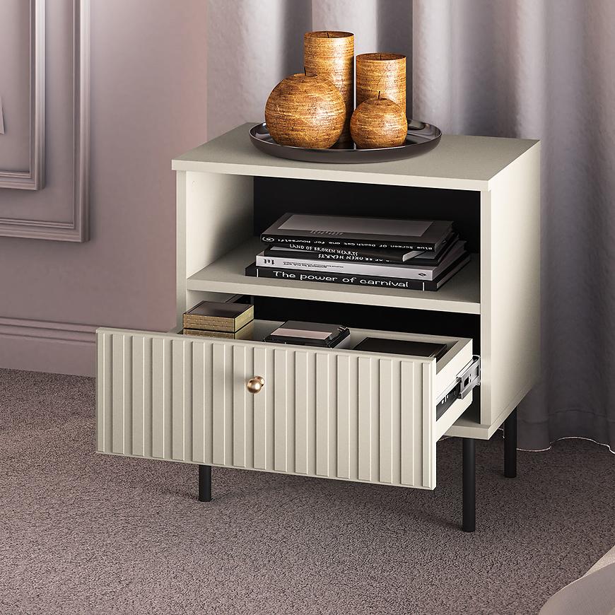 Funkcjonalność: Szafka nocna Sophie 07 wyposażona jest w jedną pojemną szufladę, która zapewnia wystarczającą ilość miejsca na przechowywanie niezbędnych przedmiotów, takich jak książki, okulary czy ładowarki. Dzięki temu wszystkie najpotrzebniejsze rzeczy będą zawsze pod ręką.