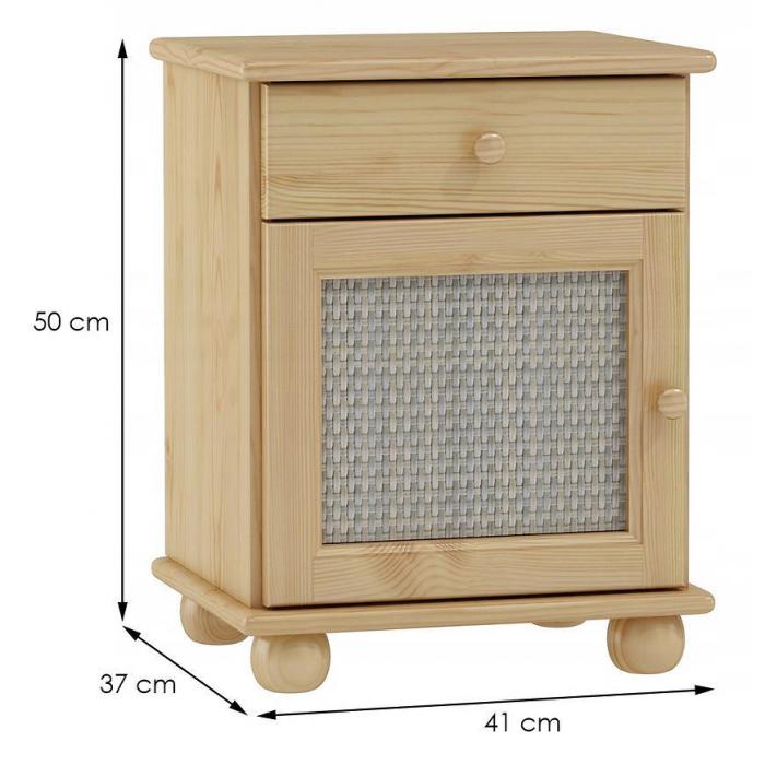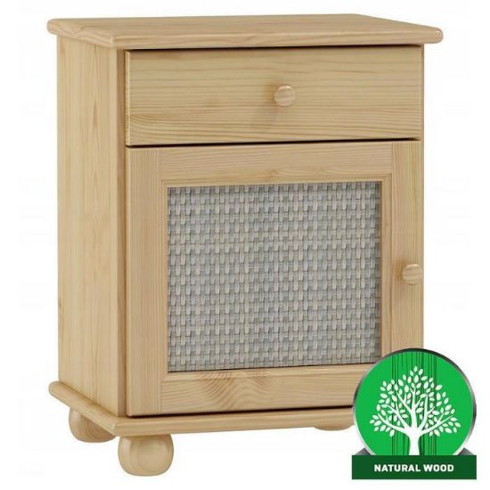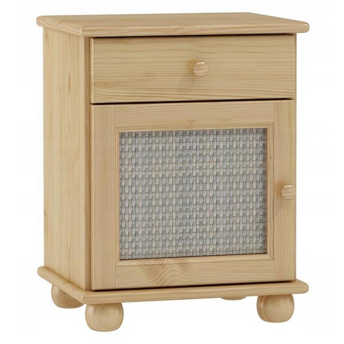 Szafka nocna została wykonana w stylu klasycznym. Jest to praktyczny i funkcjonalny mebel. Konstrukcja szafki jest stabilna i wytrzymała. Materiał wykonania to drewno w kolorze sosny. Szafka nocna posiada jedną szufladę i jedną zamykana szafkę, w której można umieścić najpotrzebniejsze rzeczy. Szafka z pewnością znajdzie swoje zastosowanie w sypialni, ale również w salonie pełniąc rolę małego stolika. Mebel jest już złożony.