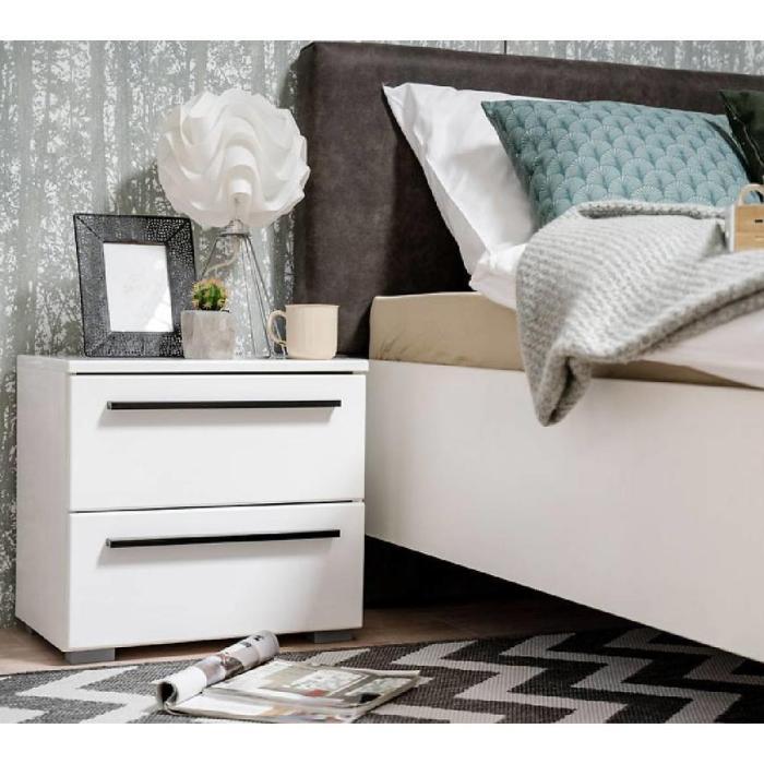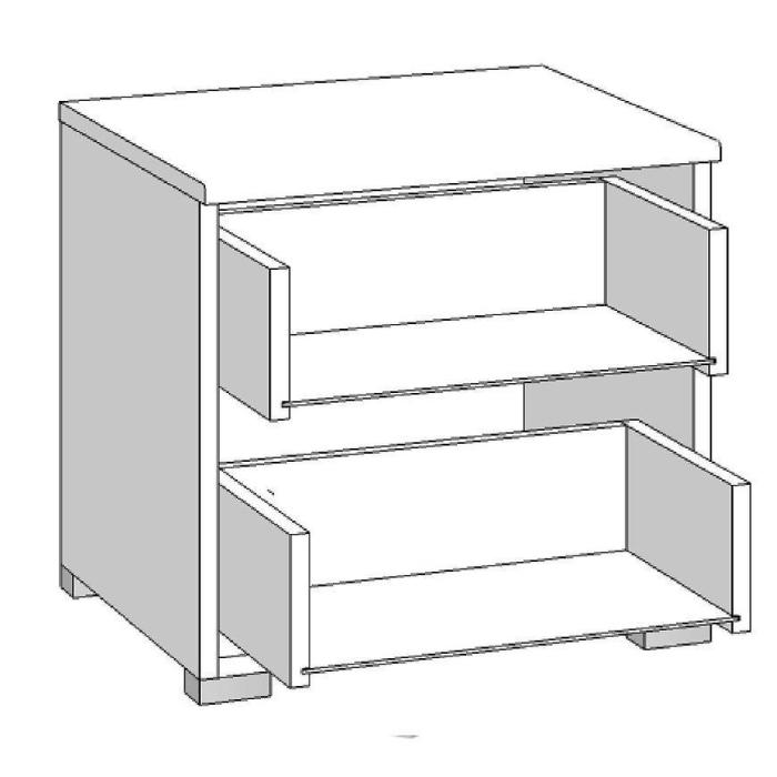 Szafka nocna Ksanti to mebel w nowoczesnym stylu, który wykonany został z płyty wiórowej laminowanej. Stolik posiada szuflady, do których można włożyć drobiazgi. Będzie pasował również w innych pomieszczeniach. Mebel do samodzielnego montażu.