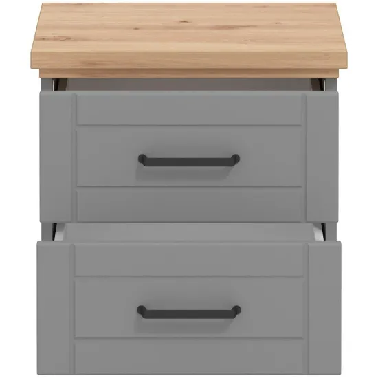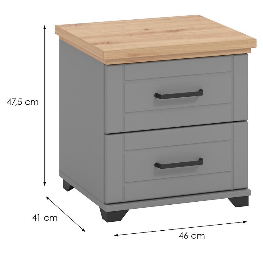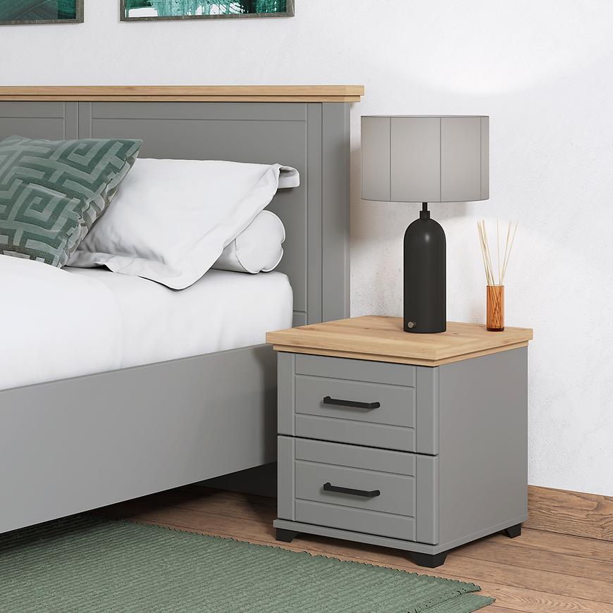 Szafka posiada dwie szuflady, które zapewniają wygodne miejsce do przechowywania niezbędnych drobiazgów, takich jak książki, okulary czy ładowarka do telefonu. Stabilna konstrukcja i staranne wykonanie gwarantują długotrwałe użytkowanie.