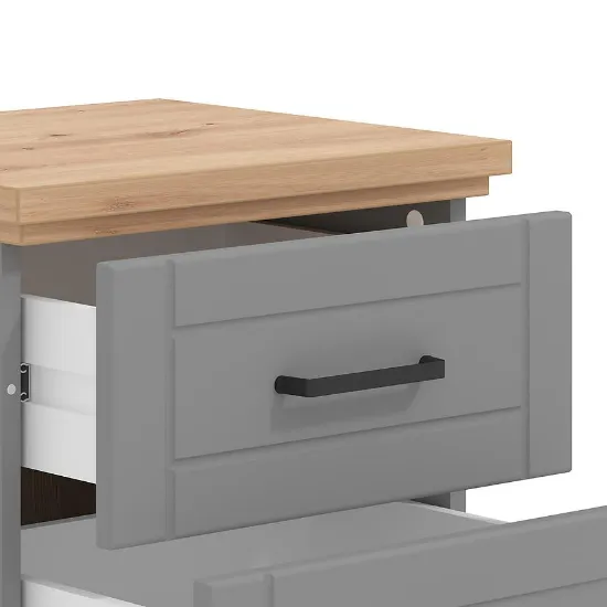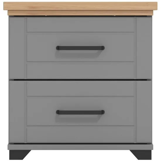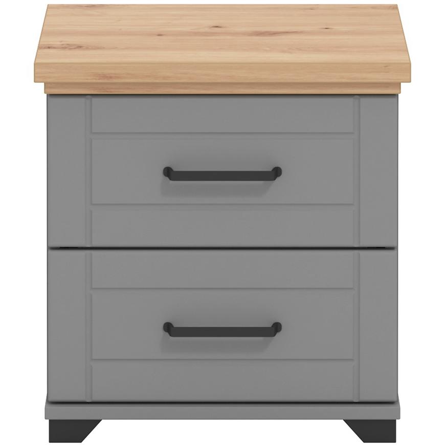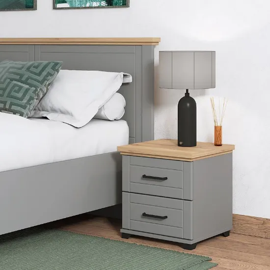 Szafka nocna z kolekcji Valencia w kolorze szarym to doskonałe połączenie funkcjonalności i nowoczesnego designu, które idealnie dopełni aranżację każdej sypialni. Wykonana z płyty wiórowej laminowanej, cechuje się wysoką odpornością na uszkodzenia mechaniczne i łatwością w utrzymaniu czystości. Matowe wykończenie nadaje meblowi elegancki i subtelny charakter, doskonale wpisujący się w modne, minimalistyczne wnętrza.