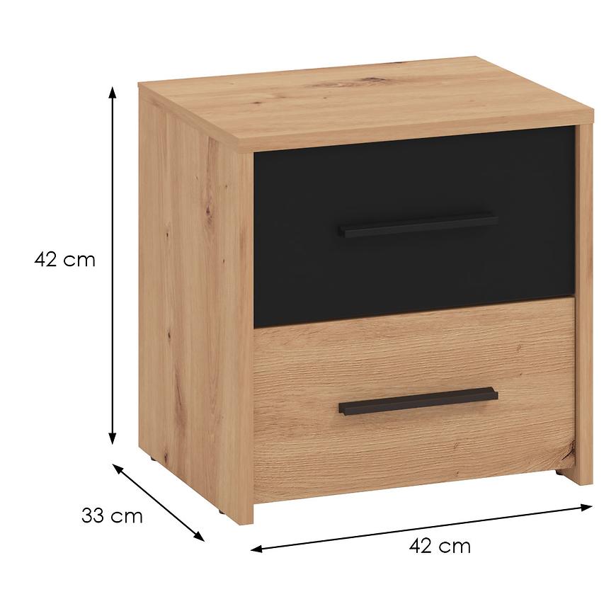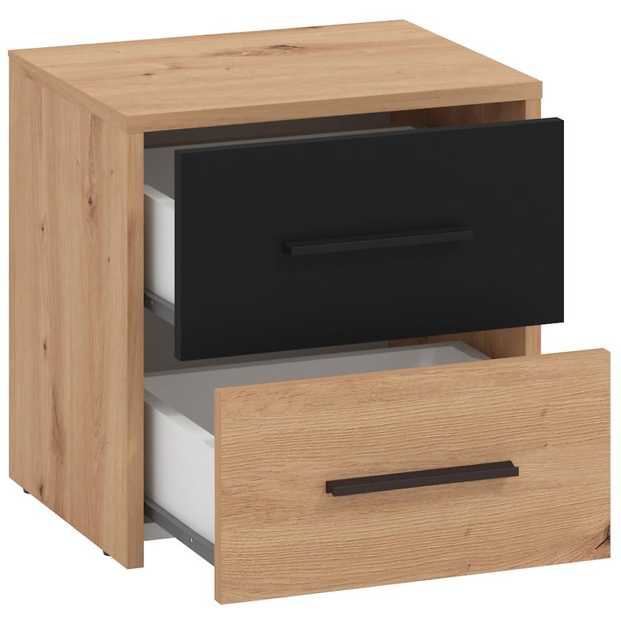 Wszystkie elementy tej szafki nocnej zostały starannie zaprojektowane, aby służyć użytkownikowi przez wiele lat. Dwie szuflady pozwala na przechowywanie najpotrzebniejszych przedmiotów w zasięgu ręki, dzięki czemu Twój sen będzie spokojny, a sypialnia schludna.